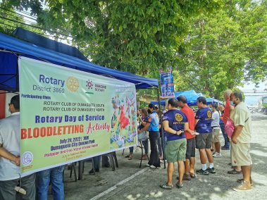 A Joint Blood letting activity of Rotary Club Dumaguete South and Rotary Club Dumaguete North help at Dumaguete Quezon Park, Philippine Red Cross Negros Oriental Chapter. This is in observance of the National Blood Donor’s month for the month of July.